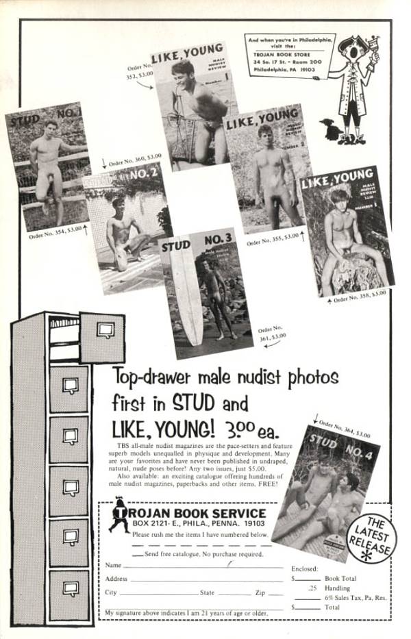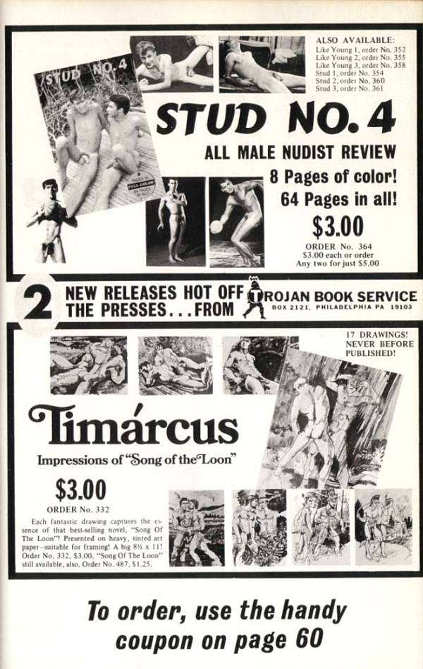 RA Enterprises showcase magazine from 1968 “Apollo Male Nudist Review” featured Art Ulrich, Danny De Whis, and Dale Rossiter among others.
