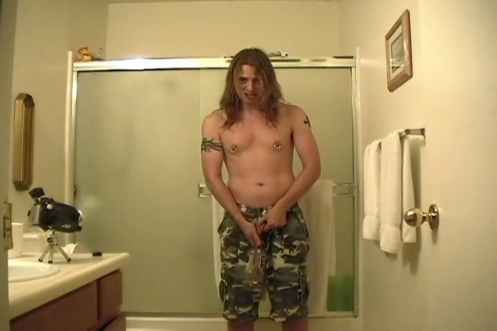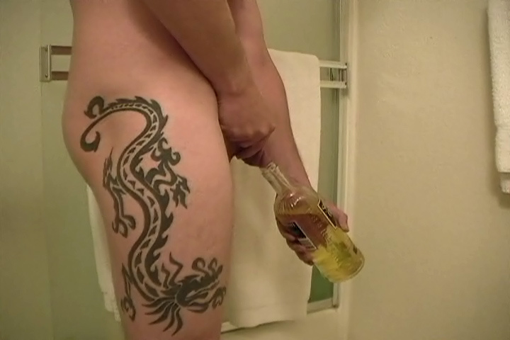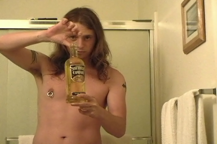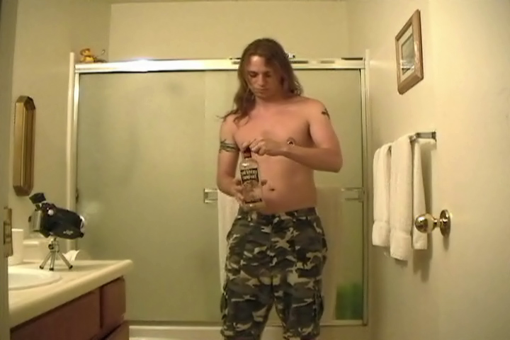 Jack Drago fills a fifth liquor bottle with piss on Mini-DV Videotape for DaddyTiger.TV.