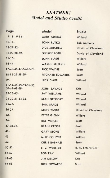 Avery Willard documents the leather scene of 1965 featuring a number of guys who went on to be scene legends like George Roth, Sam Spade, John Savage, and Rick Wayne.