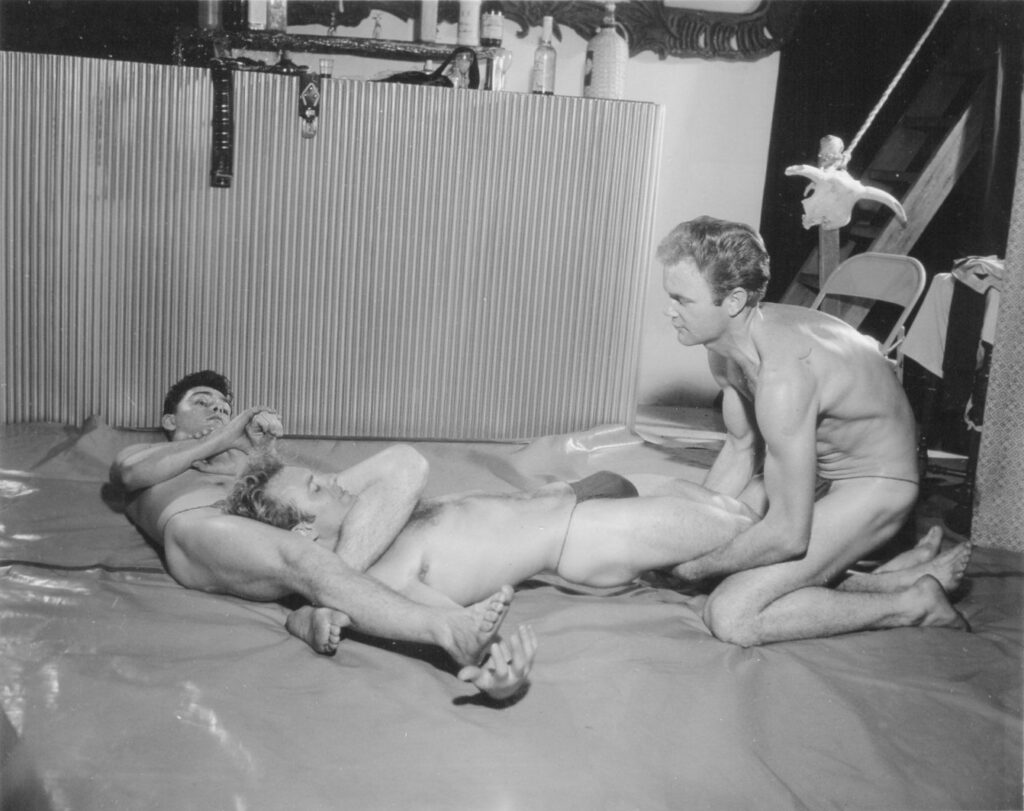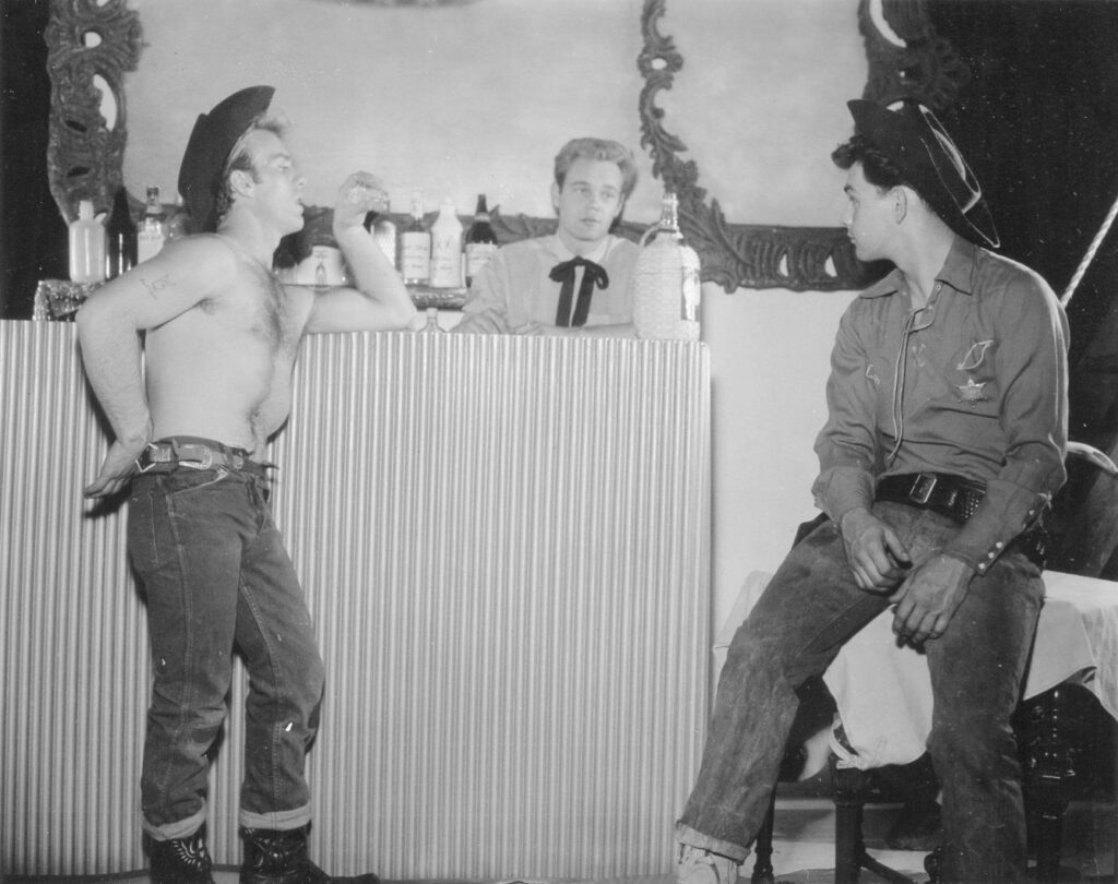 Belligerent Cowboy by AMG featuring Jerry Sullivan, Bob Atkins, and Joe Spencer photographed by Bob Mizer in the late 50s.