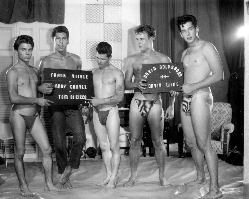 Bodybuilders and Gangsters: Andy Chavez poses with Frank Vitale, Tom DiChico, David Goldsboro, David Wing. Released march 1970.