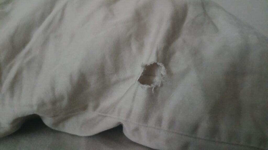 When he takes you a little too literally and actually chews a hole in your pillowcase…