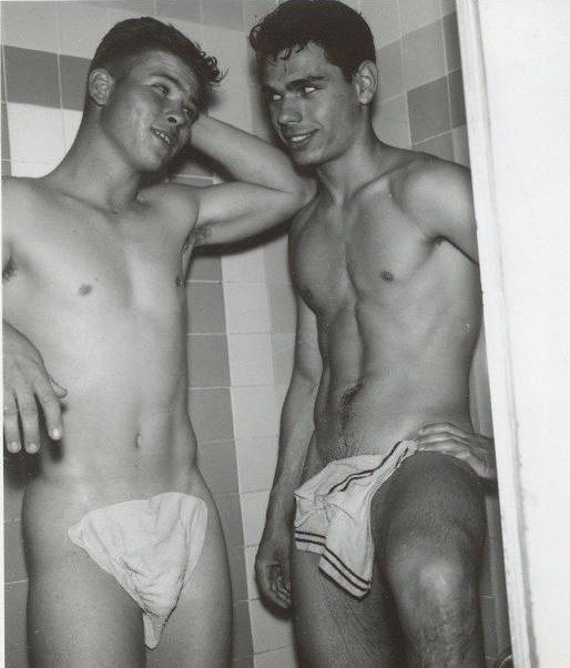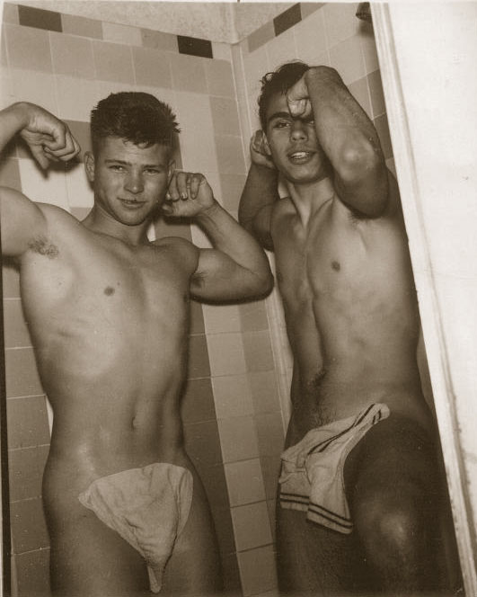 John Davidson poses with Monte Hansen in AMG’s shower.