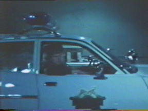 Highway patrolman Clint Lockner (wearing his own uniform) stops Scott Anderson in this scene from Steve Scott’s 1983 film “Face to Face”