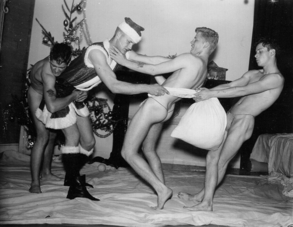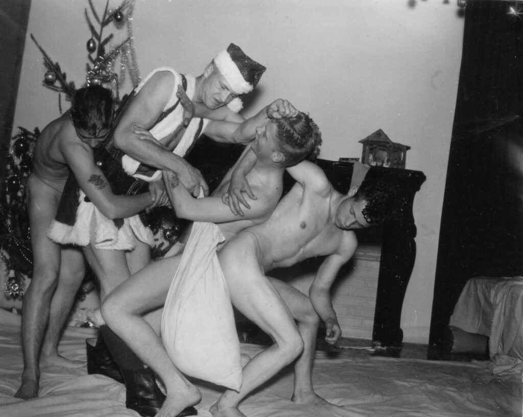 Santa comes a little early on Christmas Eve for these three models photographed by Bob Mizer in the late 50s.