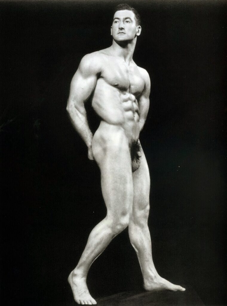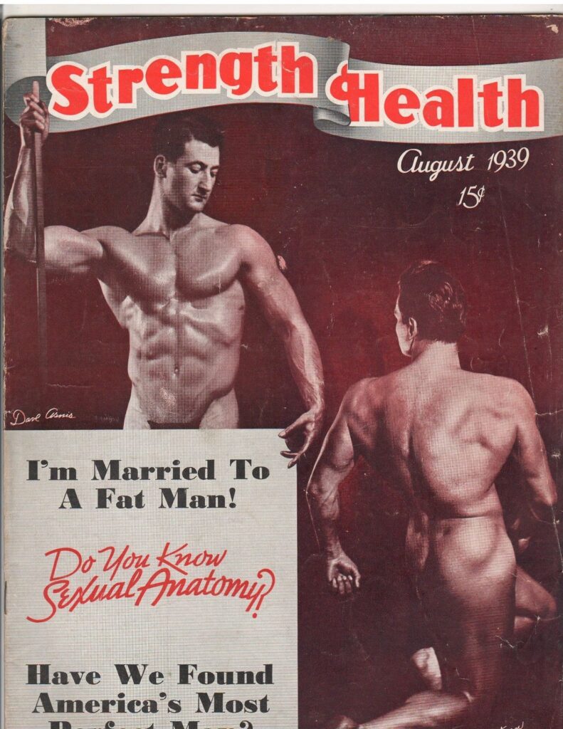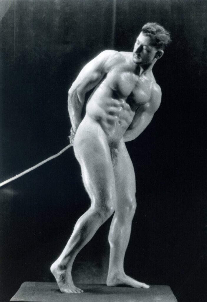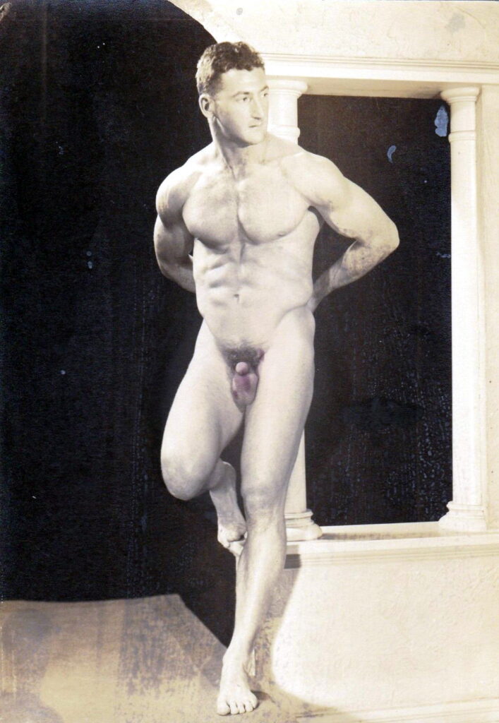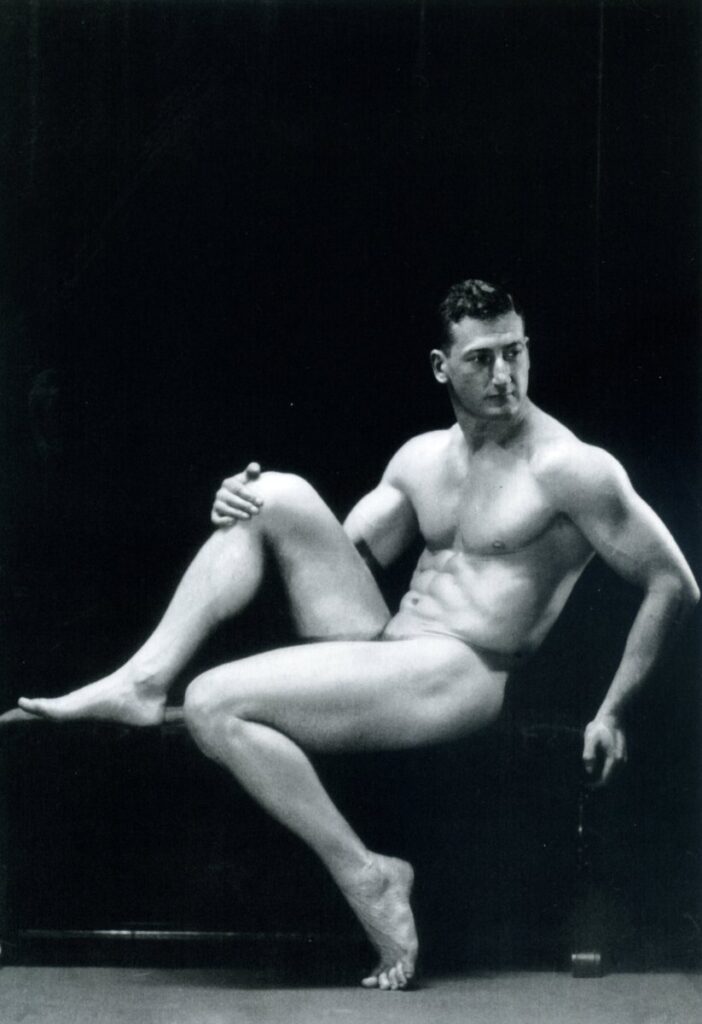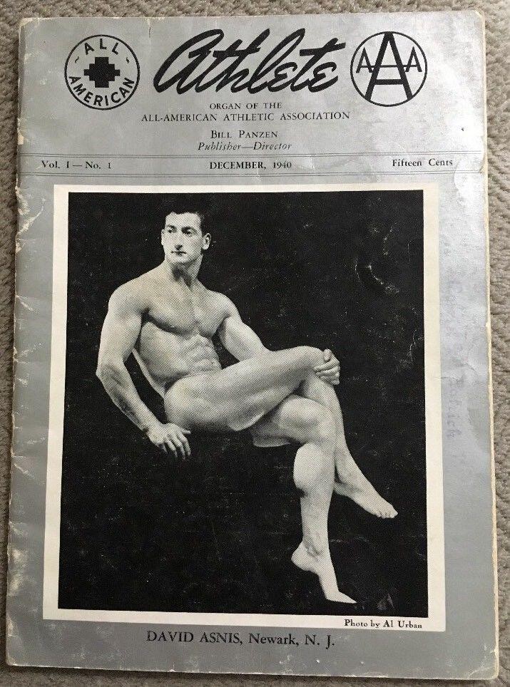 Late 30s-early 40s bodybuilder David Asnis was a regular model of Al Urban’s from 1938 to 1940. Asnis was famously unhung and was fond of Al Urban’s no posing strap style.
