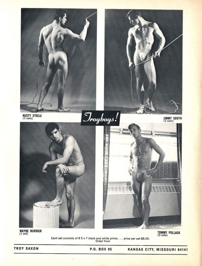 More Troy Saxon Models by Robert KurtzPosted on January 31, 2026December 13, 2025 Models for Troy Saxon Studios came from far and wide and many only shot a few images. Reed Shaw, 1966 John Bryan aka Gale David Wayne Burdick Mike North Donnie Kaye Larry Oz John Duncan Mike Evans, 1969 Glen Bishop Bob Foxx Mark Stinner Tommy Pollack Tom Hawes Mac Johnson Lefty Ellis Mike North Tom Hawes Mark Stinner Richard Parsons Wayne Burdick Don Taylor Bob Foxx Jim York
