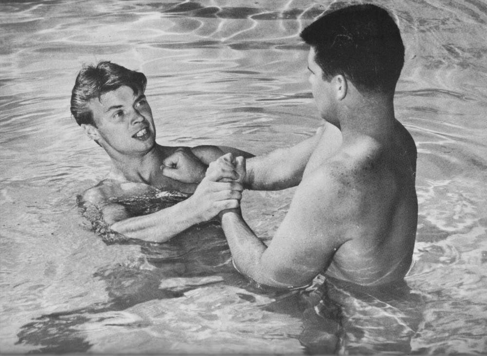 Chuck Hall and Ken Sullivan by Robert KurtzPosted on February 21, 2026February 4, 2026 Chuck Hall poses with Ken Sullivan by Bruce of LA’s pool in the early to mid 60s.