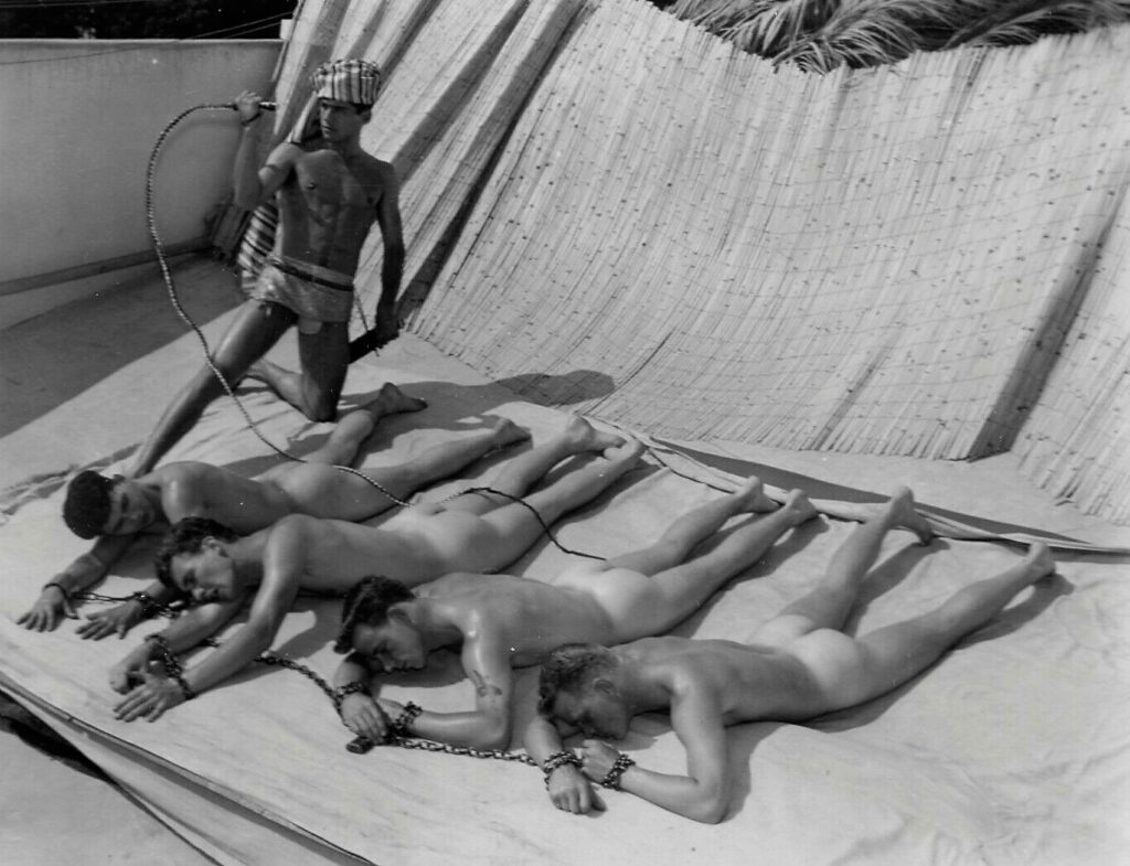 “Slave Revolt” starring Larry Dunn, Dale Hall, Gary Logan, Ed Manning, and Joe Spencer in a film by Bob Mizer for Athletic Model Guild, 1962.