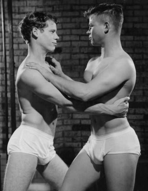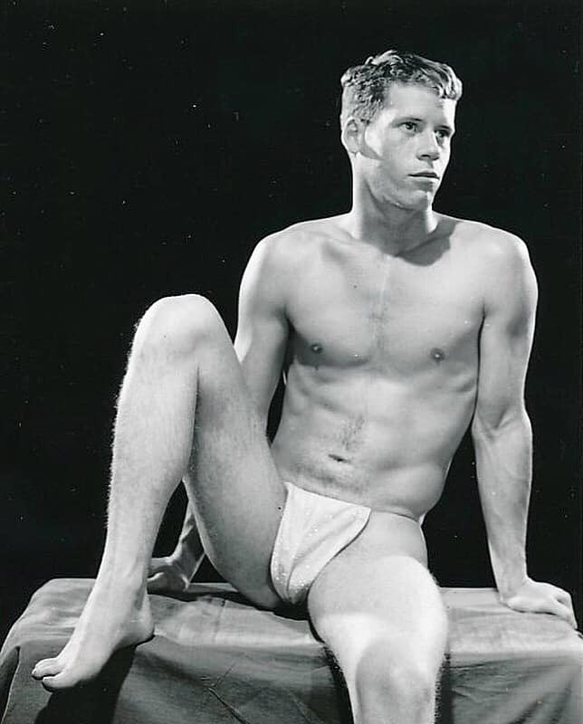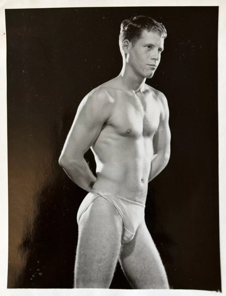 Bill Deane models in posing strap for Bob Mizer of Athletic Model Guild.