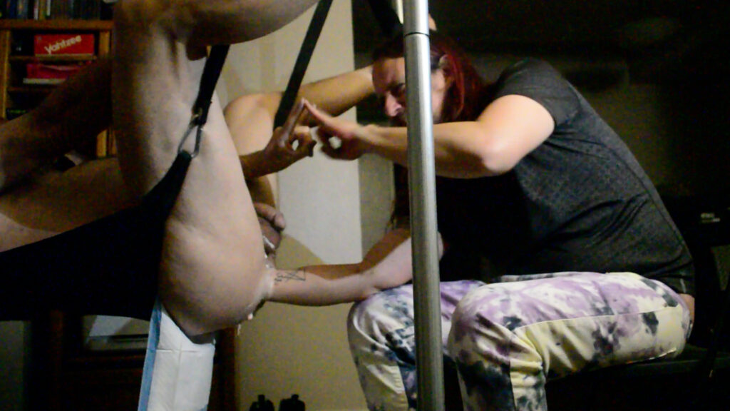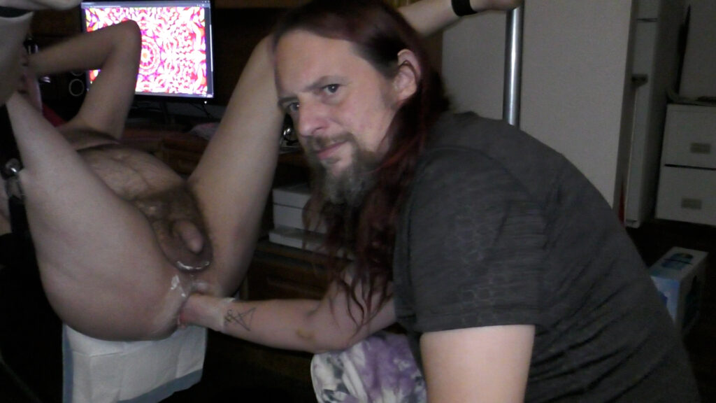 And now for the exciting conclusion of our fisting session in the hypno sling.