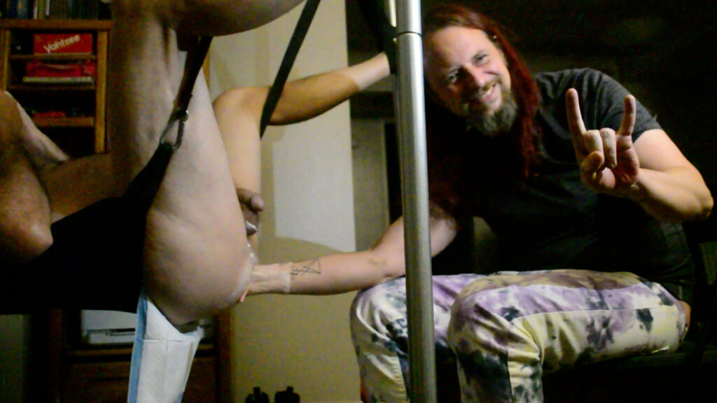 Fisting Rubber Pig in the hypno sling on March 22, 2026.