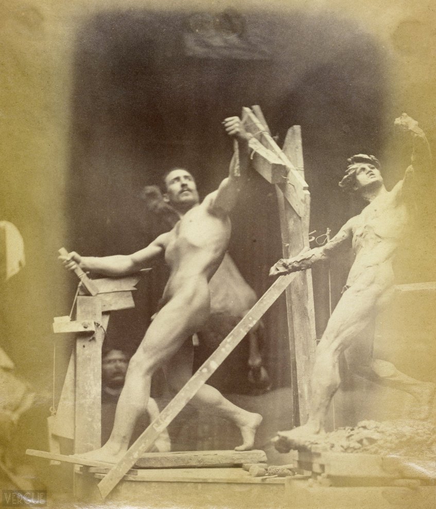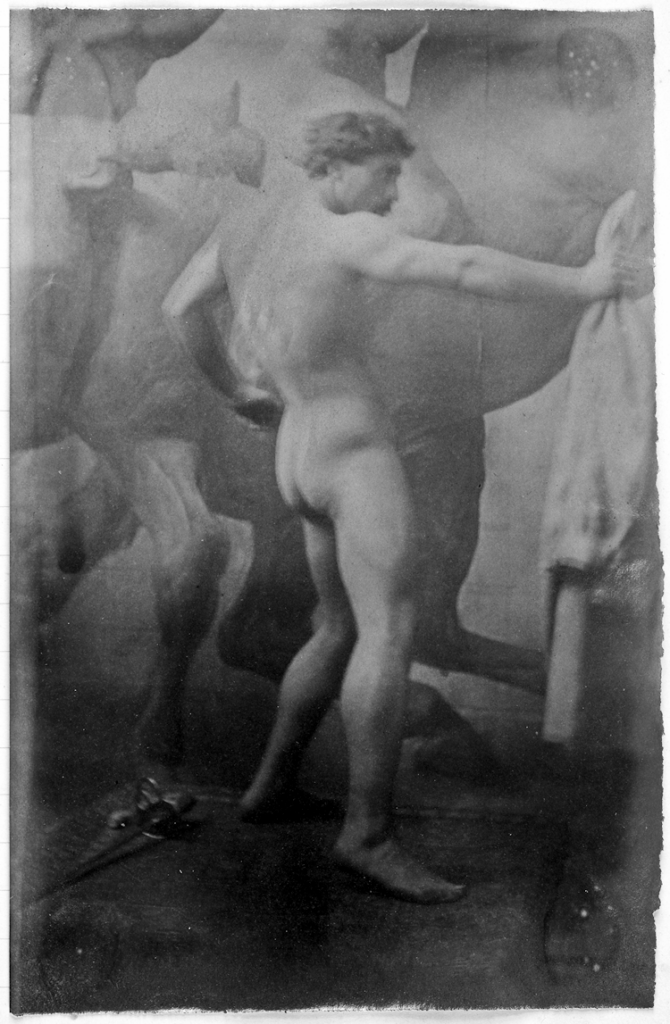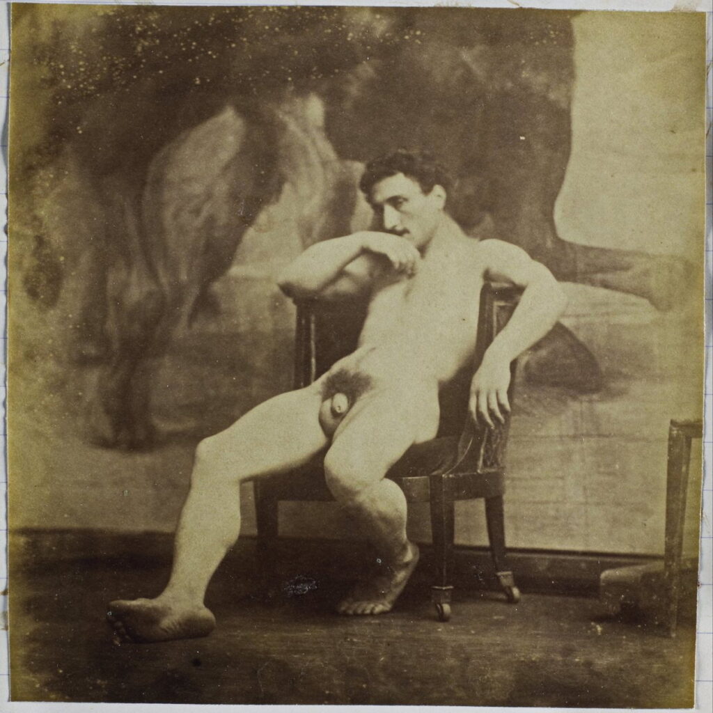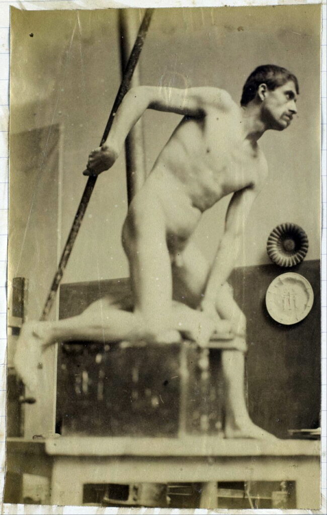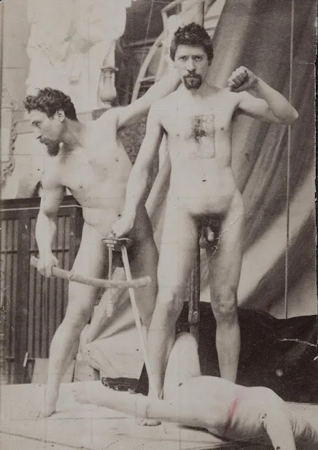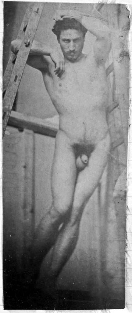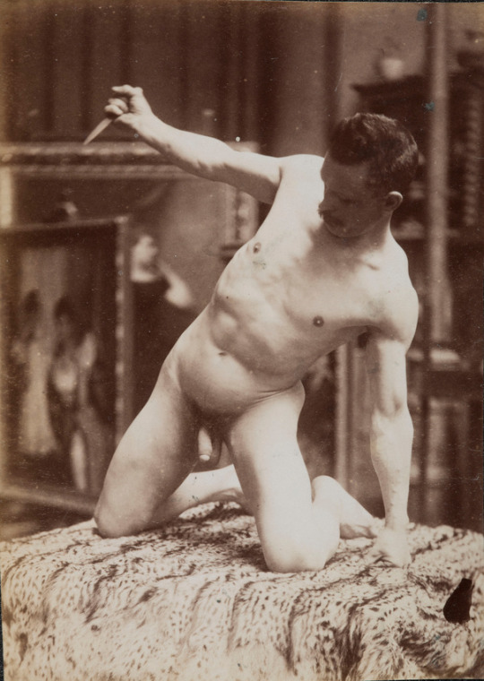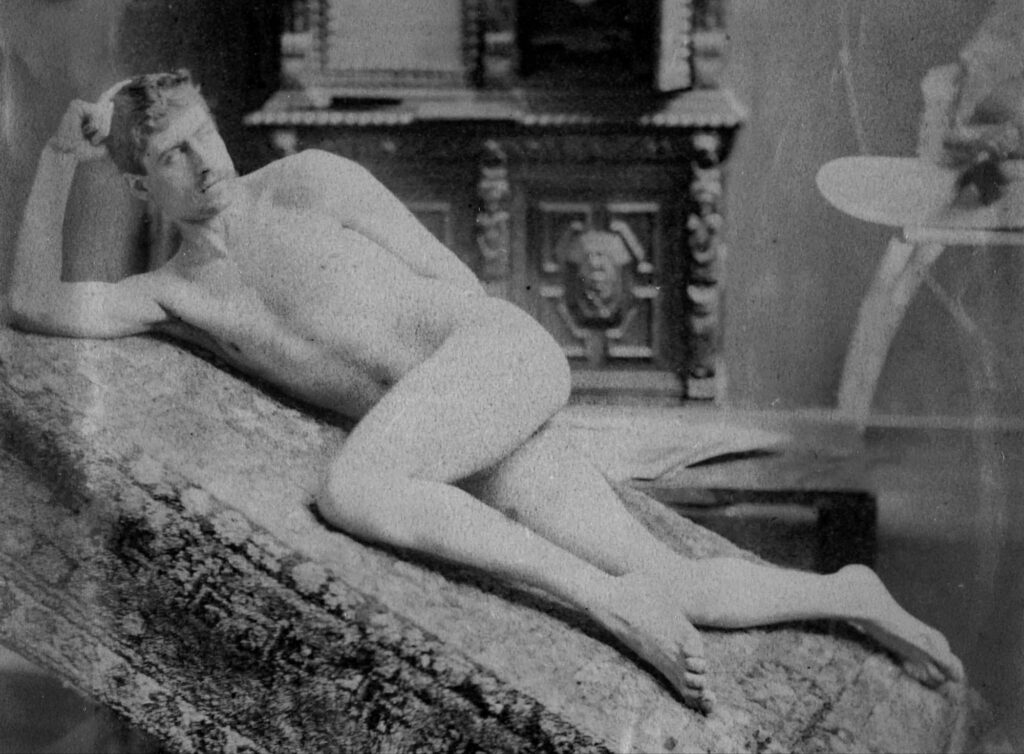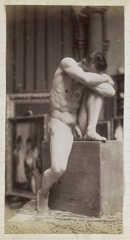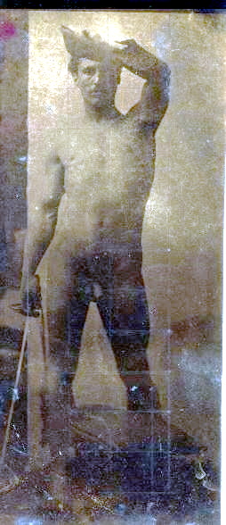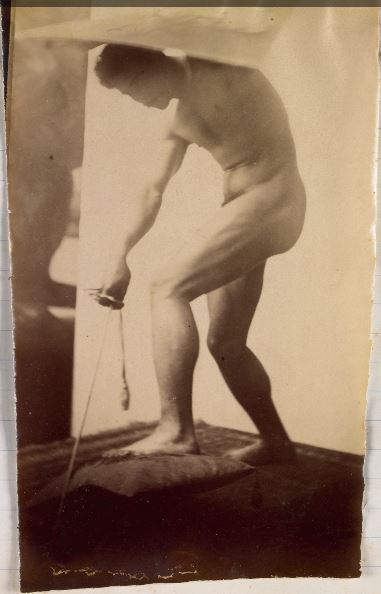 In the 19th century, male nudes were usually taken with artistic, rather than pornographic intent. These works by Jaques LaLaing exemplify the tradition of taking nudes as a substitute for a life model for sculpting, drawing, and painting male nudes.