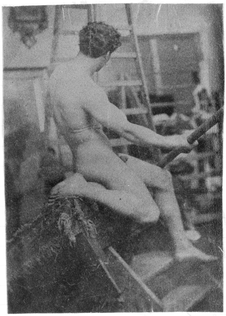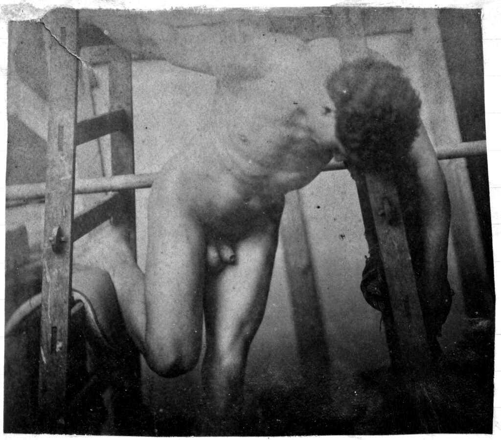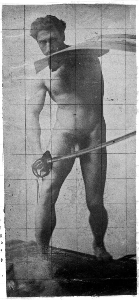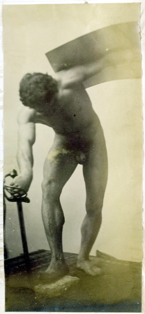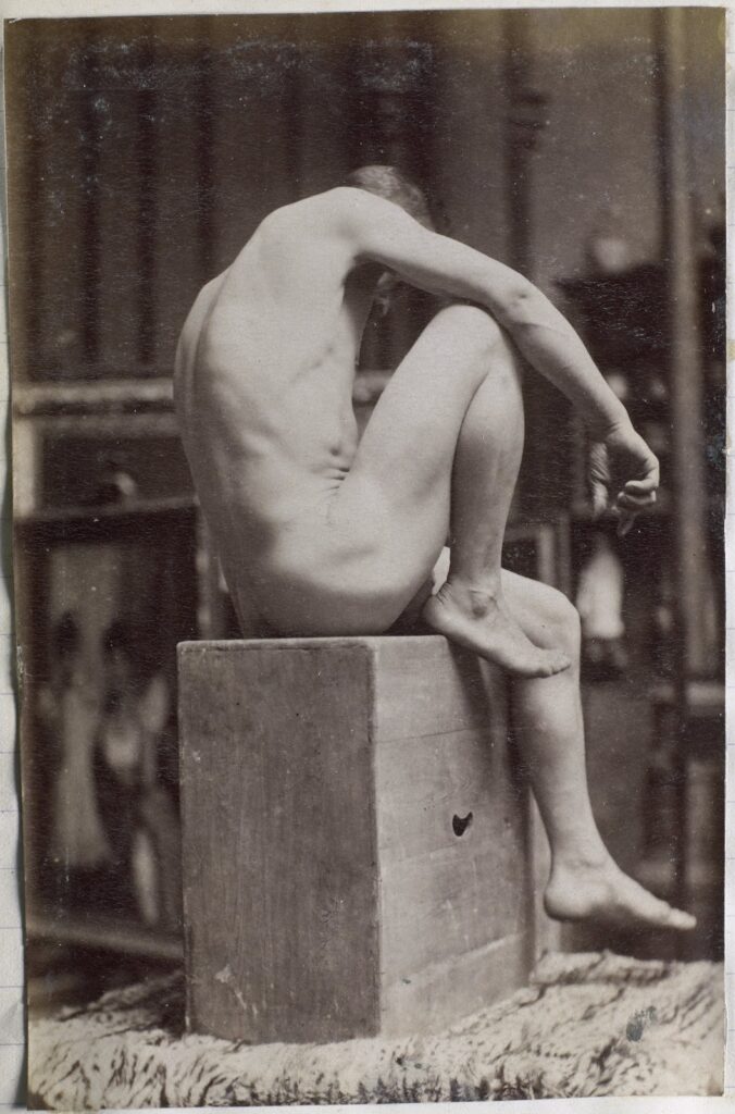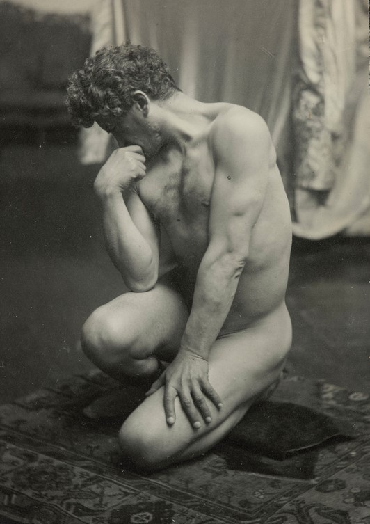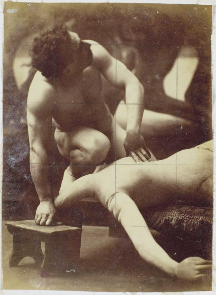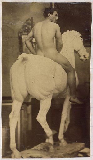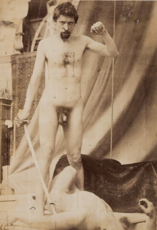 In the 19th century, male nudes were usually taken with artistic, rather than pornographic intent. These works by Jaques LaLaing exemplify the tradition of taking nudes as a substitute for a life model for sculpting, drawing, and painting male nudes.