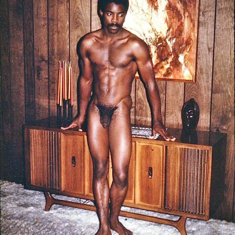 Black bodybuilder Ronnie Moore poses for Don Whitman at his home in the early 70s.