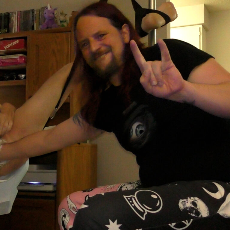 Fisting Rubber Pig in the living room in my Tool shirt and witchy pants. Video filmed with two different cameras on June 1, 2025 by Jack Drago.