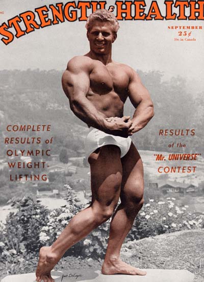 Jack Dellinger on the cover of late 40s and 50s bodybuilding mags
