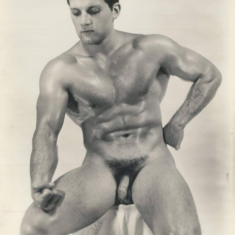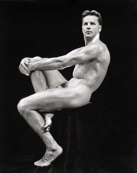 Early 40s bodybuilder Jules Bacon poses nude for Al Urban between 1941 and 1944.