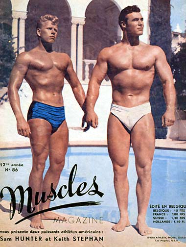 50s physique model Sam Hunter and Keith Stephan pose for Bob Mizer of Athletic Model Guild.