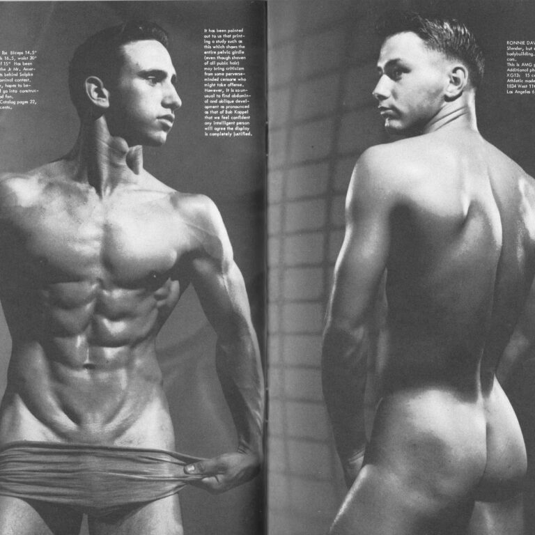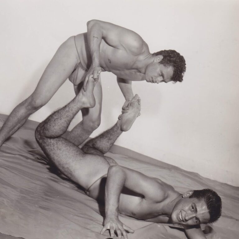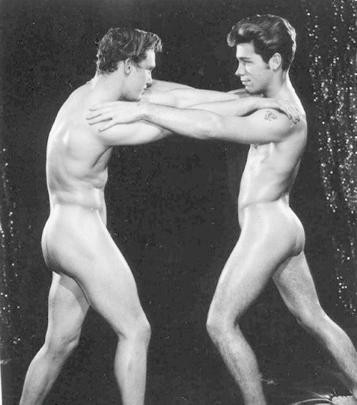 Tommy Evans and Jim Colette photographed by Bob Mizer for Athletic Model Guild. Published 1968.