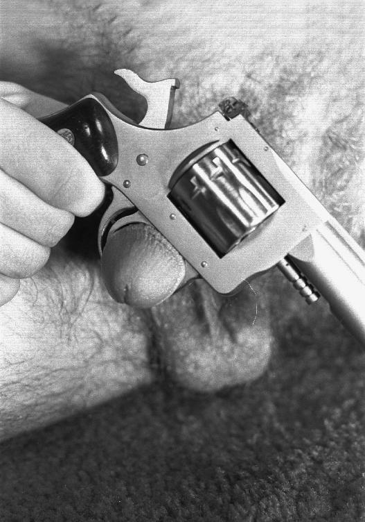 This series of Chad photographed by Classic Prints in the late 1980s has a film noir look with his wrapped penis contrasted with a gun.