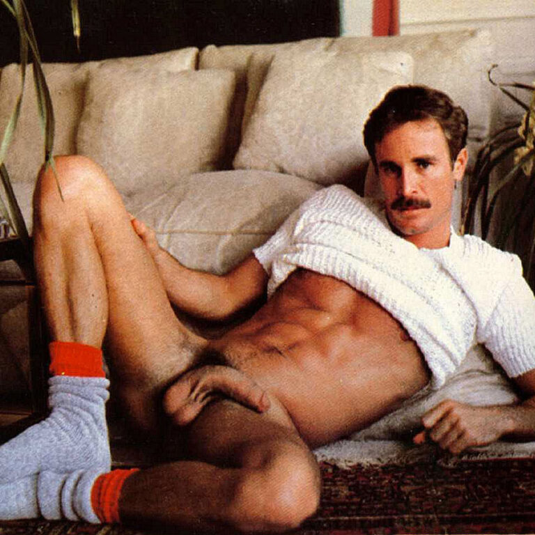 Eric Ryan, Rick Taylor, and Daniel Holt have a three-way in this magazine taken from Sid Roth’s 1984 precondom classic film X-tra Large.