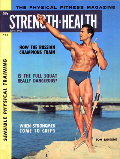 Mr. America 1958, Tom Sansone featured in bodybuilding magazines of the time. Photos by Bruce of LA, Lon of NY and others.