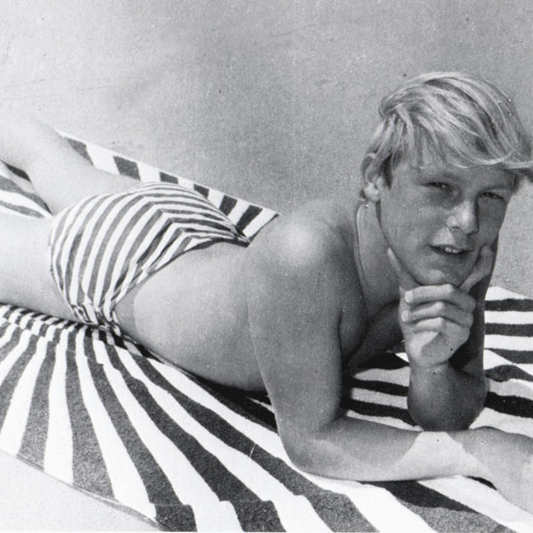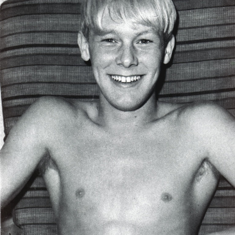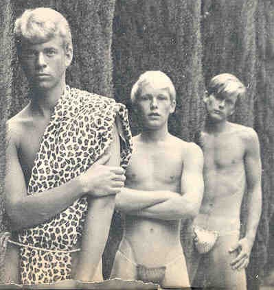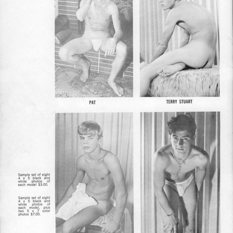Sean Patrick poses in clothes and posing straps for lyric in the early 1960s.