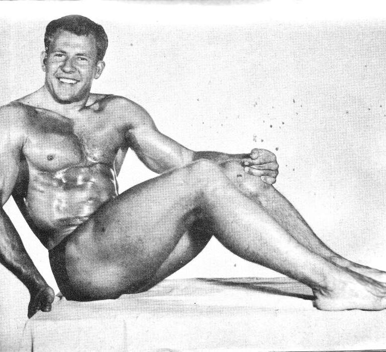 Muscle man and minister in training Ray Harper photographed by Russ Warner in the October, 1955 edition of Vim magazine.