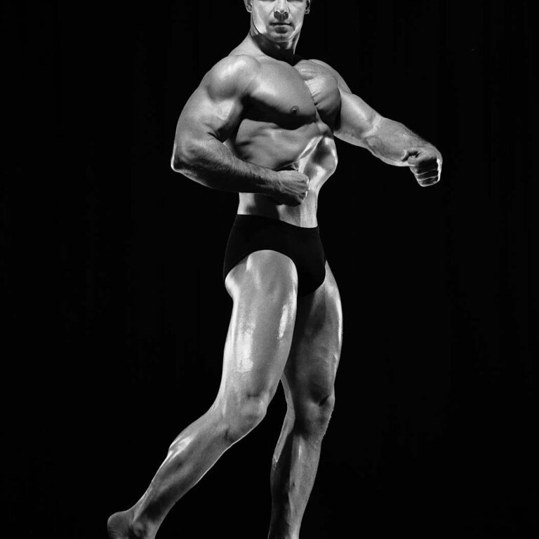 Late 40s champion bodybuilder Floyd Paige of Oakland, CA poses for Russ Warner in San Fransisco in 1949.