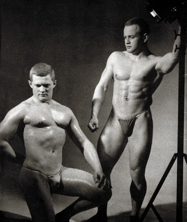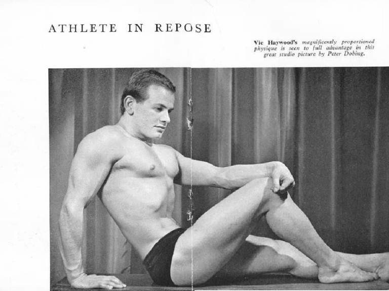 Vic Haywood photos taken by Scott of London featured in 1950s bodybuilding magazines.